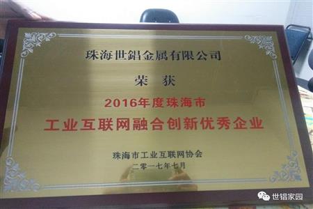 喜讯:珠海世錩荣获珠海市工业互联网融合创新优秀企业