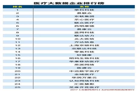 医疗大数据企业排行榜