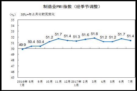 7月制造业PMI为51.4% 比上月下降0.3个百分点