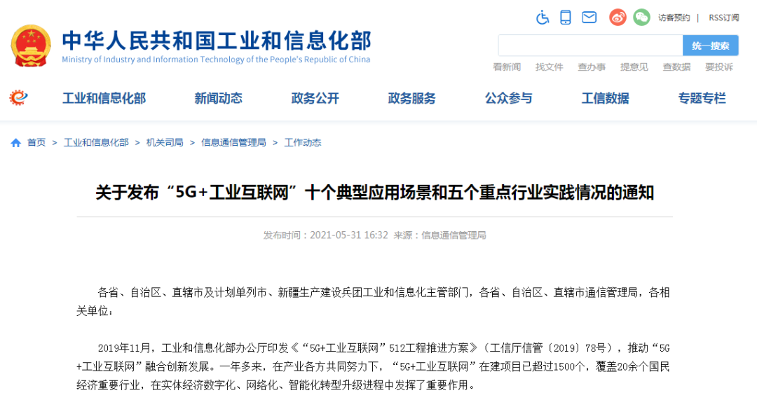 关注!工信部发布“5G+工业互联网”十个典型应用场景和五个重点行业实践情况