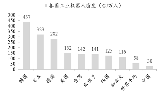 通常我们用工业机器人在制造业的渗透率水平来大致反映一个国家的制造业自动化水平。