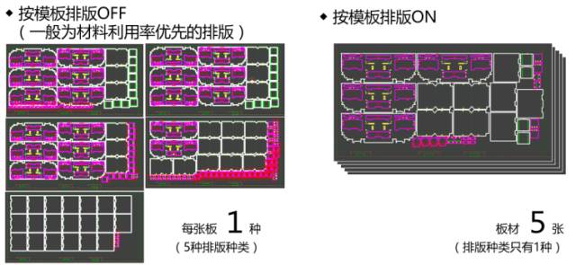 在自动排版方面,以往的自动排版为了提高板材利用率而进行混排,但这种方式相当不利于产品分拣及物料流转,结果是节约了板材成本,却浪费了更大的工厂运营成本,同时还损失了分拣及喂料的效率,可谓拣了芝麻丢了西瓜。