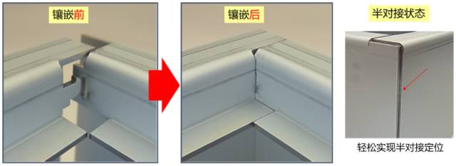 而在需要留出半个板厚进行对接面焊接的两个零件上,系统可以分别做成卯榫结构,焊接时只要将开有工艺孔的零件挂在连接处被自动做成榫头形状的零件上,就能进行无需工装辅助的高精度定位,由于留边尺寸也精确无误,就能进行貌似填丝焊一般的R面焊接;