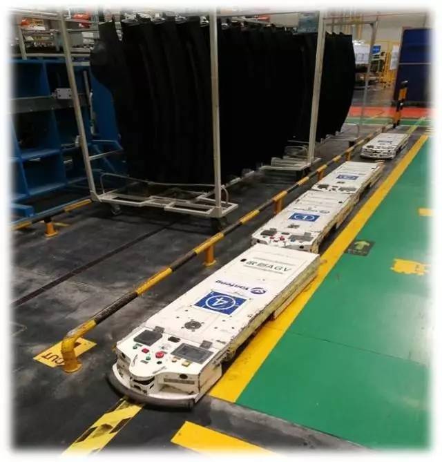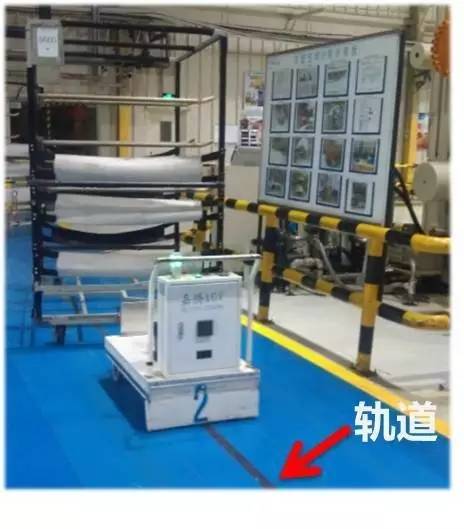 AGV小车相信大家都见过,其最大的局限在于在地上需要铺设轨道(如下图)。