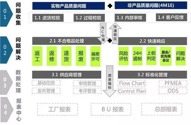外观缺陷在现场一般通过触摸屏进行录入。一些功能性的缺陷则是通过检测设备测试结果的数据导入到总系统中,实现与零件条码的绑定。不同设备之间的接口融合是个大难题,尤其是一些国外设备供应商,大多不愿意开放接口。