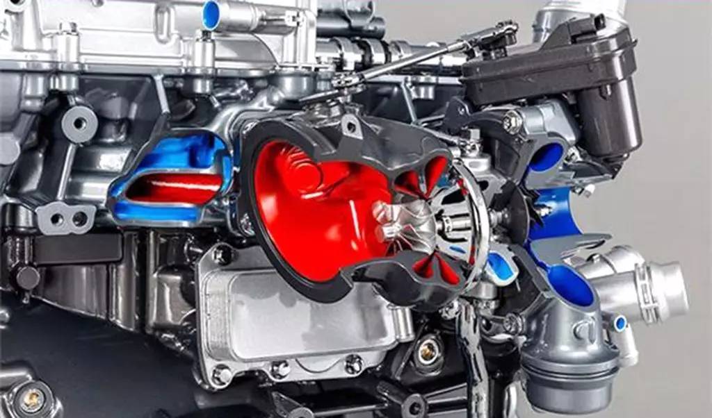 双涡管涡轮增压器涡轮壳体内部的管道一分为二:一根通过一缸与三缸的废气,另一根则通过二缸与四缸的废气。这一设计可避免排气干涉,提升涡轮机叶轮反应速度,增压压力可以即时建立,起步即可输出高扭矩,实现发动机燃烧效率的最大化。