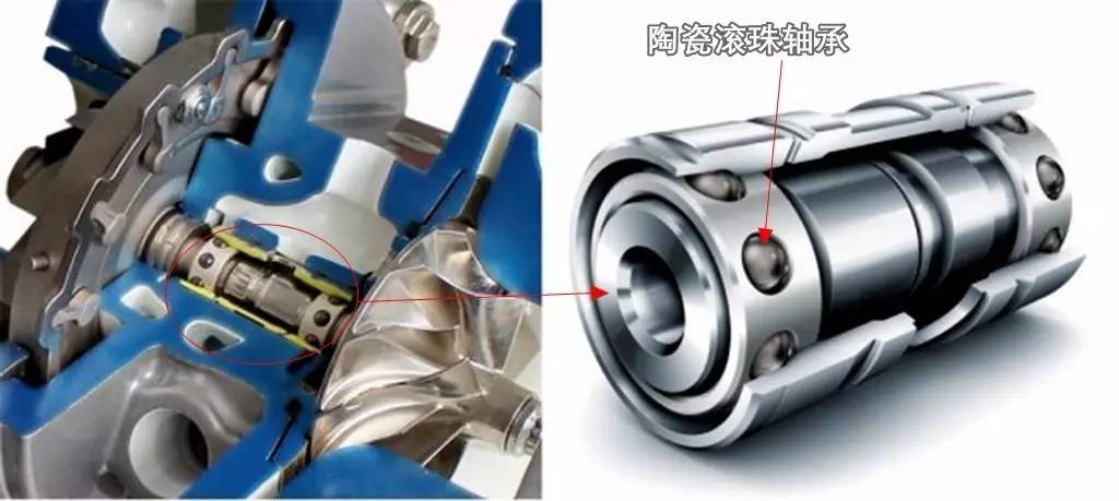陶瓷滚珠轴承由德国舍弗勒开发,在量产车用车发动机上应用还属首次,由于陶瓷材料特性,应该说从结构上解决了涡轮增压器轴承磨损导致机油消耗的问题。
