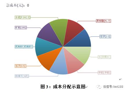 公司领导远程即可对原材采购数量、质量等进行实时监控,同时该系统还可以对生产成本的组成进行分析(图3),同时可以进行生产误差,车辆供应情况,原材质量情况,混凝土出厂数量,签收数量,混凝土质量情况进行全面分析,一目了然,便于决策。