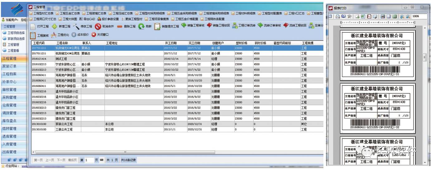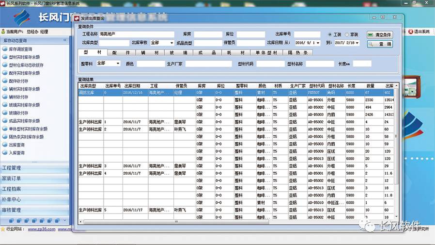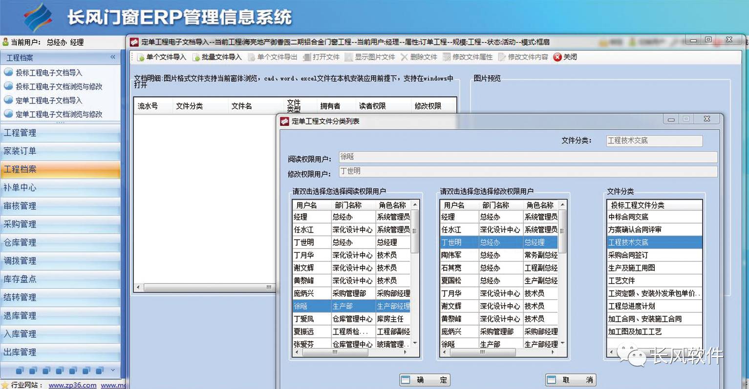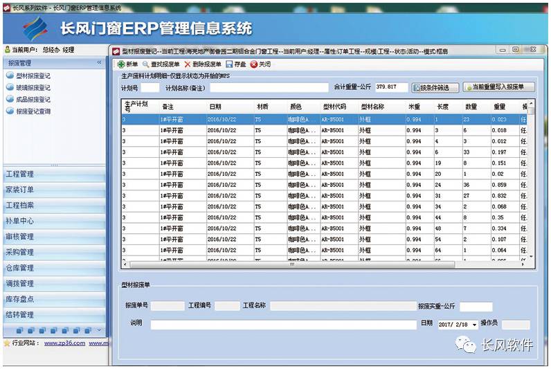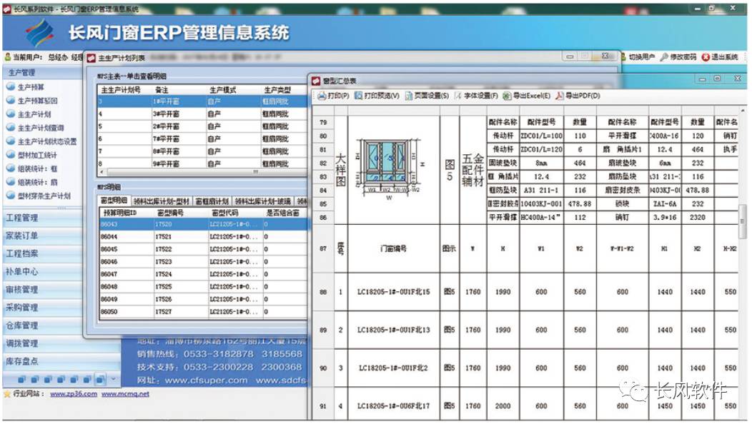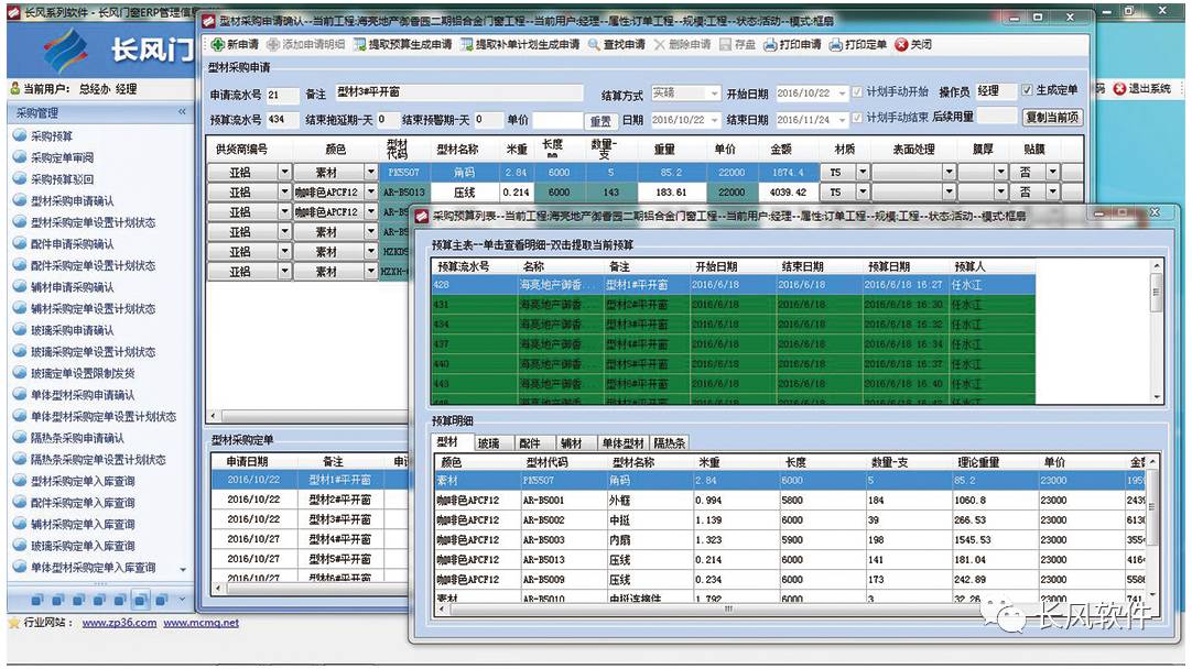 《长风门窗ERP管理信息系统》是一套为门窗生产企业量身定制、集通用ERP功能与门窗设计计算功能与一体,高度集成、高度整合的专业门窗生产制造企业整体管理解决方案。其功能涵盖门窗企业投标预算、门窗设计、物料采购、门窗销售、生产技工、物流仓储、财务结算、项目管理等所有业务流程,将物流、资金流、信息流有效整合,实现了真正意义上的三流合一。