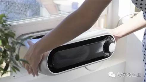 它是一款窗式空调,安装时不需打墙钻孔,自带有一个可伸缩框架,只要窗户宽度在53-91cm之间就能安装上。