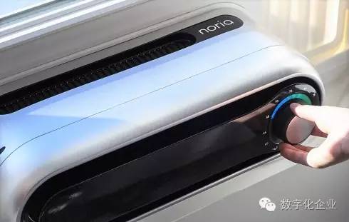 这款智能空调叫Noria,第一眼给人的感觉是外观精致小巧,充满科技感,尺寸为380mm×460mm×147mm,只有13.6公斤重。