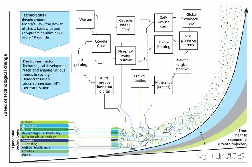 工信部部长苗圩在解读《中国制造2025》时指出,工业互联网是顺应新一轮工业革命和产业变革的重点发展领域,也是“互联网+”最早实现的行业之一。新技术的蓬勃发展,也给制造业注入了新的活力,推动了工业互联网的发展,如图1所示,显示了新技术成指数级的发展趋势。