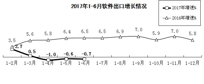 出口持续小幅下滑,外包服务出口略有增长。上半年,软件业累计实现出口233亿美元,同比下降0.7%,在5月小幅回升之后,6月再次陷入负增长,下降0.9%。其中,外包服务出口增长3.9%,增速比1-5月提高2.9个百分点;嵌入式系统软件出口下降1.2%。