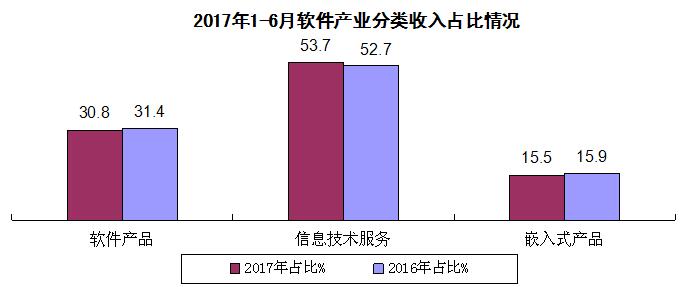 软件产品收入平稳增长,信息安全、工业软件产品保持良好发展态势。上半年,软件产品实现收入7881亿元,同比增长11.6%,增速比一季度提高1.3个百分点,但仍低于全行业平均水平2个百分点。其中信息安全产品和工业软件产品均增长19.4%,分别比一季度提高6.9和1.5个百分点。