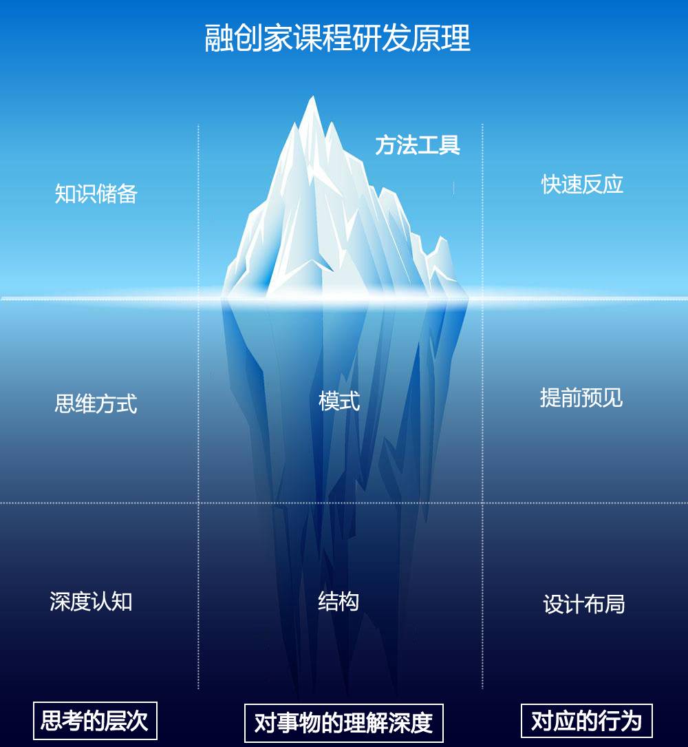 融创家经过研发的课程,从底层认知开始到社群顶层设计再到方法、工具,让你真正根据各自变化自如的活学、活用、创新。转型升级重点企业家是要在深度认知、底层思维上升级,方法、工具、套路都是手段,可以被创新、被颠覆的。