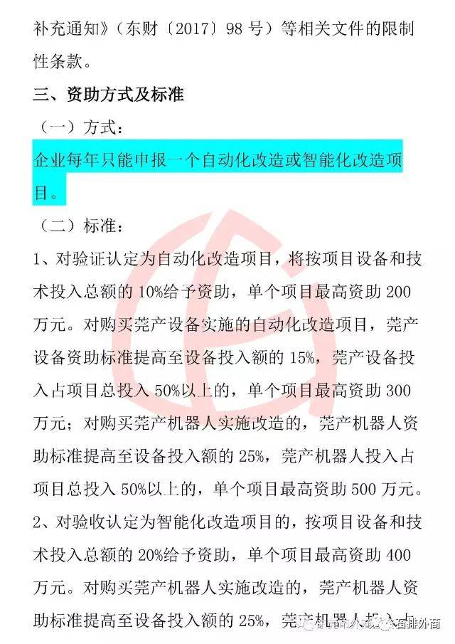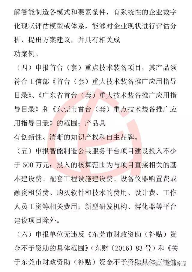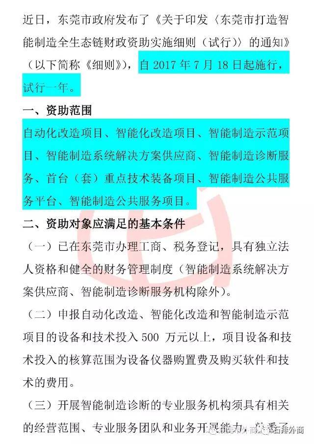 近日,东莞市政府发布了《关于印发〈东莞市打造智能制造全生态链财政资助实施细则(试行)〉的通知》(以下简称《细则》),自2017年7月18日起施行,试行一年