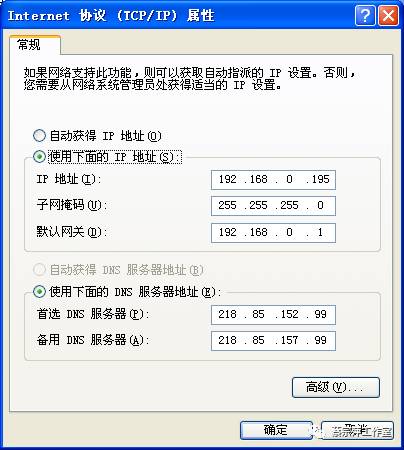 2设置DNS为218.85.152.99和218.85.157.99