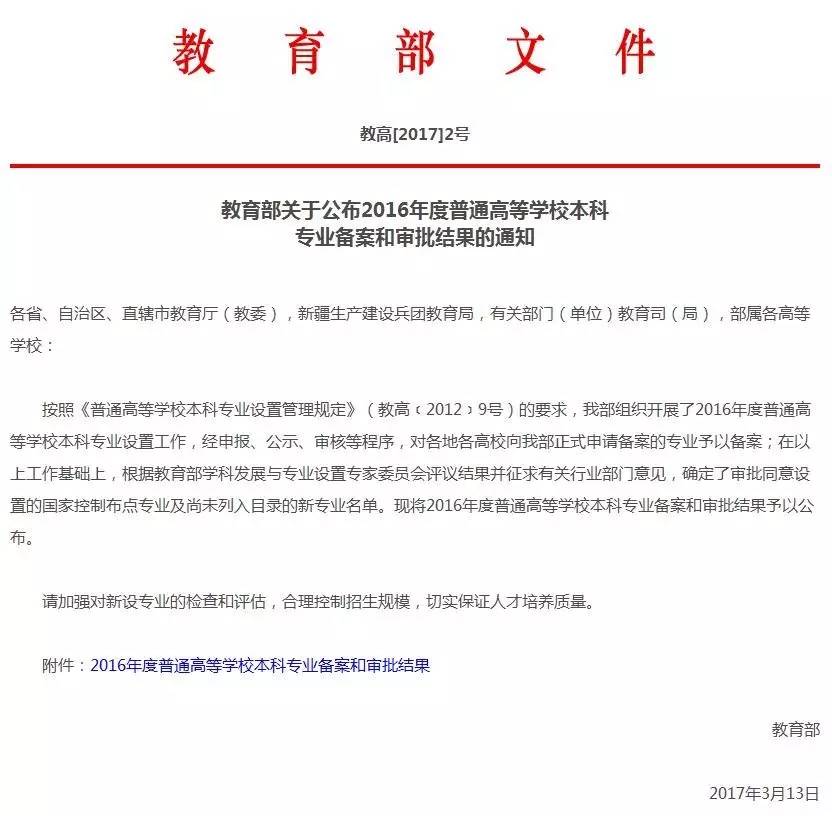 2017年3月17日,教育部网站发布了《教育部关于公布2016年度普通高等学校本科专业备案和审批结果的通知》,附件《2016年度普通高等学校本科专业备案和审批结果》中包括了”数据科学与大数据技术专业”获批名单,共32所高校获批。其中,贵州共有5所大学获批。