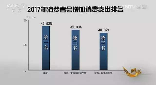 根据大调查的数据显示,2017年消费者会增加的消费支出排名,第一位的是旅游,第二位是电脑手机等数码产品,第三位是空调、彩电等家电产品。