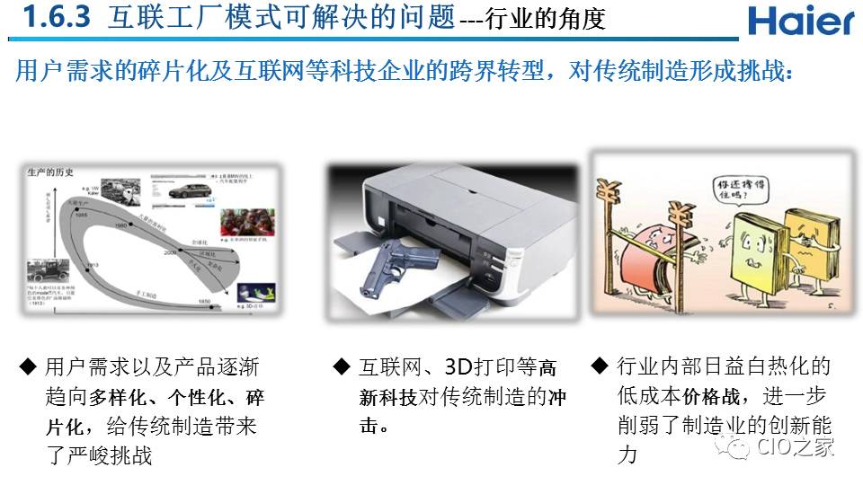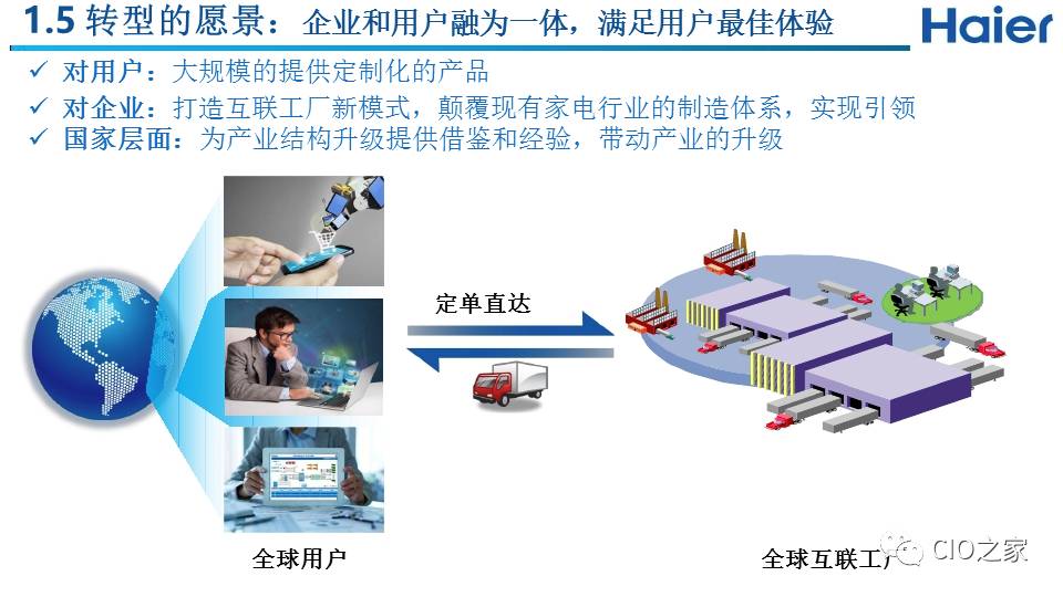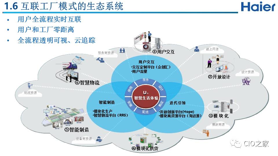 我们理解的互联工厂不是一个工厂的转型,而是一个生态系统,整个企业全系统全流程都要进行颠覆,通过互联使用户获得最佳体验,在满足用户个性化需求的同时给企业创造效益。满足用户个性化需求是前提,然后才可以通过高效率实现企业的高收益。