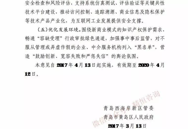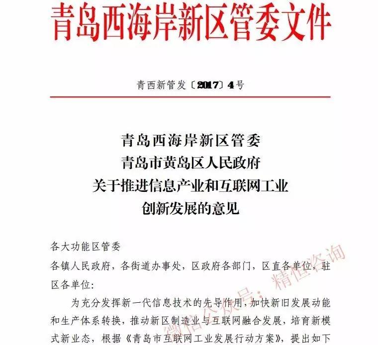 青岛西海岸新区关于推进信息产业和互联网工业创新发展的意见