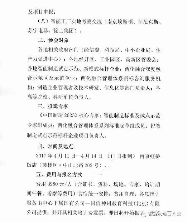 考察单位:徐工、埃斯顿、菲尼克斯、苏宁云商限额:36名主办单位:工信部人才交流中心中国智能制造百人会承办单位:北京智慧港科技有限公司我做网—智造众创平台