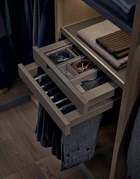 定制家具的功能件很多,挂衣杆、试衣镜、抽屉、领带盒、首饰盒、金属拉篮等,种类繁多。这些功能件从供应链上来说,可以分为两类:外购金属件和自加工件,试衣镜、金属拉篮属于外购件,属于标准件,而抽屉、领带盒、首饰盒等一些木质功能件属于自加工件,这里面也影藏着不变的标准。