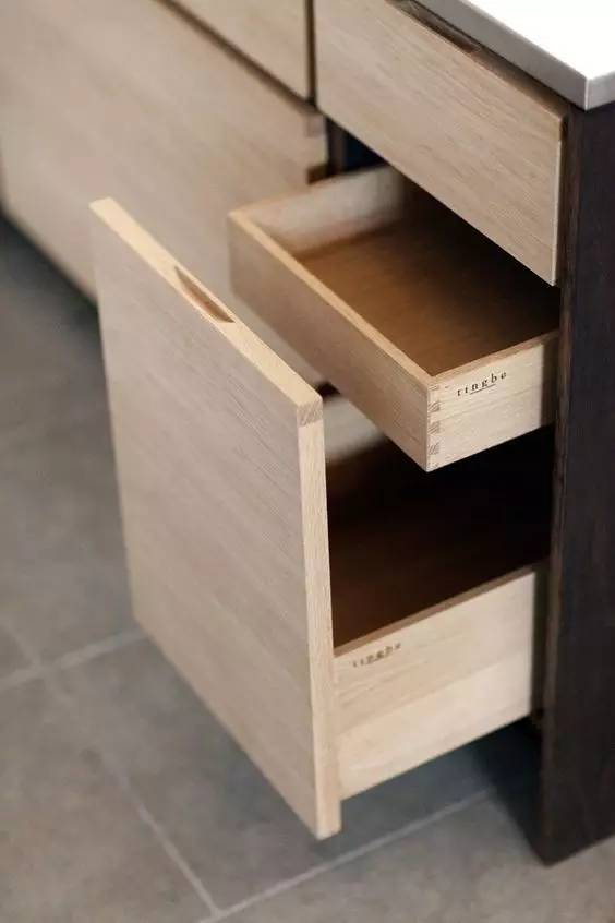 以抽屉为例,将抽屉深度标准化,一个深度,可以适应不同深度柜体要求,还可以将抽屉做成标准单元,变化抽面,从而形成不同风格不同形式的抽屉。