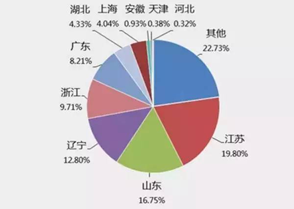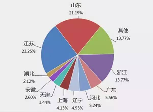 江苏是数控机床企业数量最多的省份,其次是山东
