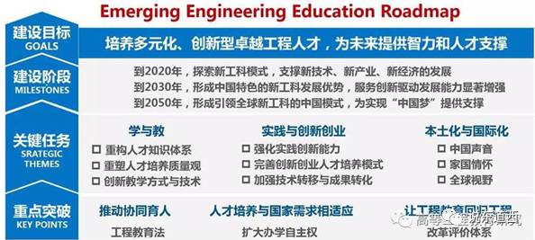 图3-新工科路线图(来源:钟登华,新工科建设的内涵与行动,高等工程教育研究,2017年5月2日)