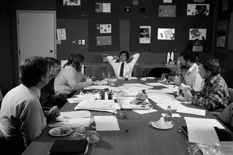 乔布斯喜欢一张表格,一块白板和坦诚的交流。他讨厌让会议变得“正式”的东西,人们可以赤脚搭在桌子上轻松讨论,而不是让会议成为折磨人的酷刑;他会果断将无关人员赶出会议室,及时打断华而不实只重形式的汇报陈述。他不能容忍僵硬的工作流程扼杀创意,而用“简洁”让事情一目了然,让参与者明确使命。