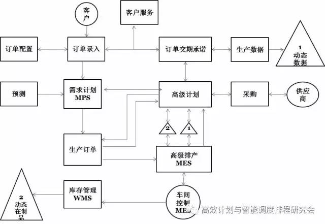 1、从SO销售订单就开始集成。交期、高级计划、高级排产、执行闭环。但这牵涉多个系统的集成。如ERP、PLM、APS、MES、WMS等)
