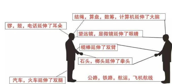 互联网云脑进化示意图图一:从人类的发展史看,人类的进步就是其若干关键性器官不断延长和连接的历史。