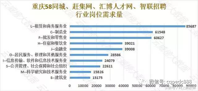 重庆网络招聘总数和制造业岗位招聘数量为474613,制造业以61548个岗位数占比12.97%,位居行业招聘榜第二。