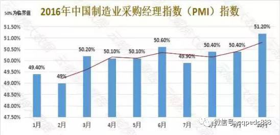 2016年中国制造业采购经理指数(PMI)指数,始终处于临界值上下(PMI取值范围在0至100%之间,50%为扩张与收缩的临界点;高于50%,表示整体经济处于扩张状态;低于50%,表示整体经济处于收缩状态)。