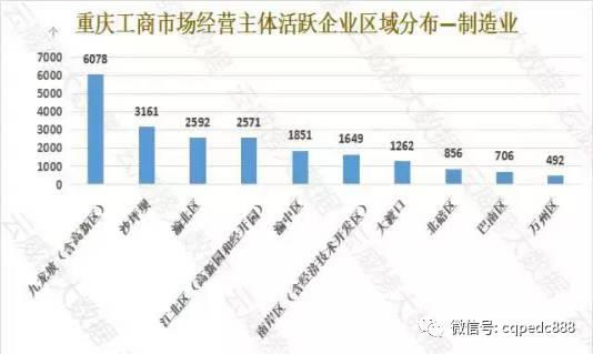 截止11月初重庆制造业市场经营主体活跃企业数为25812家,其中九龙坡以6070家稳居榜首。