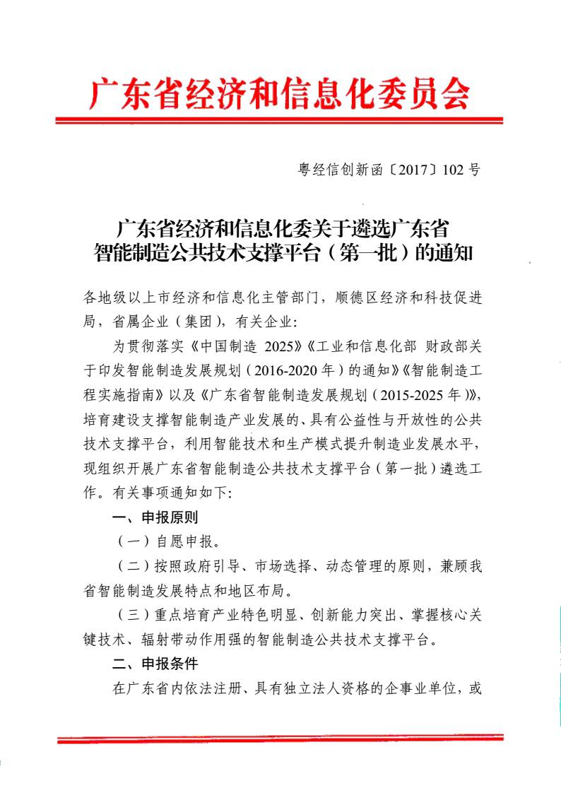 附件:粤经信创新函[2017]102号:广东省经济和信息化委关于遴选广东省智能制造公共技术支撑平台(第一批)的通知.pdf