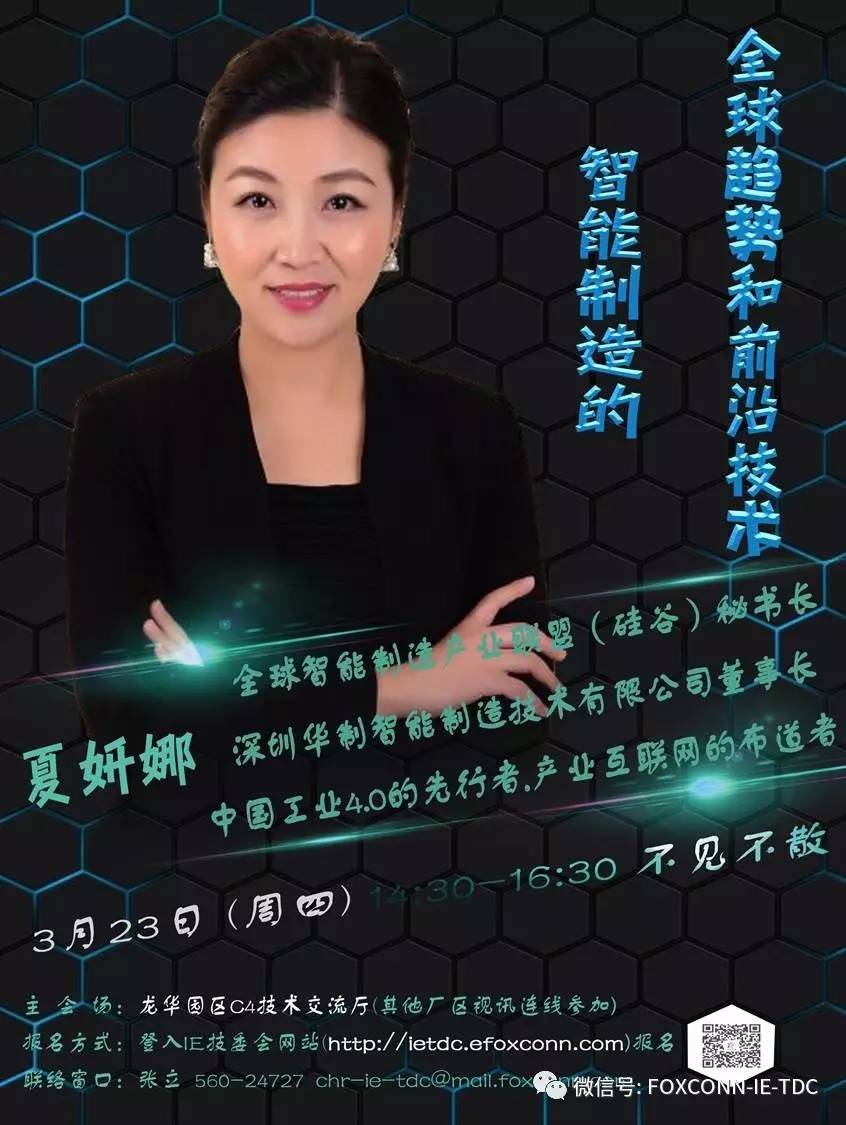 特邀华制智能制造 夏妍娜 董事长讲解《智能制造的全球趋势及前沿技术》,与专家共讨全球热点课题,机会不容错过,你懂的······