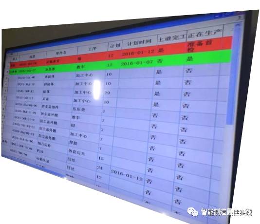 4) 可视化布置。部署工厂级看板1块,车间级看板3块,仓库看板2块,将生产实绩按照不同车间、不同权限、不同职能直观展现在生产管理办公室;