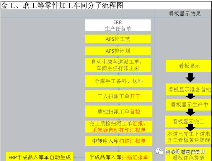 1) 流程重组。机械制造行业的智能制造过程,必然是将智能化新技术与公司制造流程全新融合优化的过程,项目组对星辰电机金工、磨工、装配车间生产流程进行了重新梳理,确定流程。举例如下:
