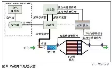 冷热试结合,不断降低热试比例,也是节能降耗的有效手段。装配线采用冷试(汽油机、柴油机)全检、热试抽检的工艺方式可保证产品质量(热试抽检比例控制到50%以内),同时大大节约了燃油损耗量,也降低了热试排放对环境造成的污染。而对热试台架的尾气采用“电加热系统+DOC+SCR+DPF”串联工艺系统(见图6),净化处理后的有害气体成分去除率≥ 75%,颗粒物去除率≥ 90%,有效降低了大气污染及雾霾危害。
