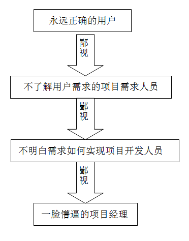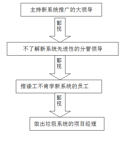 场景三:项目开发完成,领导要求项目经理进行推广,可是用户不习惯新系统的使用,认为给他们的工作带来了不便,鄙视链由此产生。