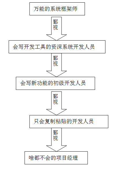 在项目的建设过程中,不同角色和分工的人聚集在一起,在项目管理的过程中,不同场景中形成了数条只可意会不可言传的“鄙视链”。