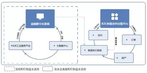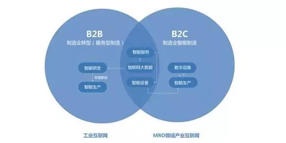 由于消费互联网的成熟发展,B2C领域的商业平台一般依据自身行业自建或依托消费互联网电商平台展开,其本身不属于B2B的范畴。但智能制造系统、数字化能力与运营管理相关的服务、产品均属于B2B范围。基于B2B工业互联网+MRO领域B2B产业互联网平台,与其智能制造系统、数字化生产系统互动,将有助于提高B2C制造业的产品与服务竞争力。