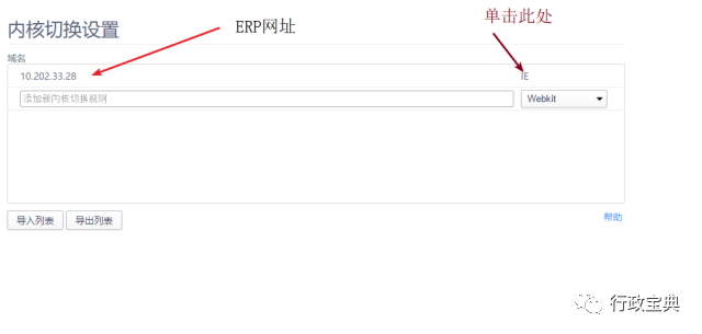 在内核设置界面会看到ERP网址,然后单击文字IE