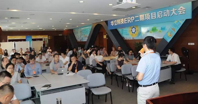 7月27日,华立科技 ERP 二期项目如期启动。华立科技董事长李军、总裁郭峻峰、副总裁马小辉、总裁助理程卫东、各平台总经理、子公司总经理、二期实施涉及的业务骨干及管理骨干以及 SAP 二期合作方九慧公司顾问团队共 70 余人参加了启动大会。会议由公司财务总监贺红云主持。
