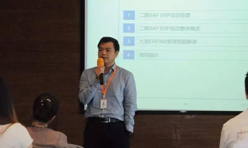 贺总作为主持人首先介绍 ERP 二期项目启动准备情况、项目顾问合作方九慧情况、以及本次启动会四个议程安排:1、ERP 二期项目背景 2、ERP 二期项目整体介绍 3、九慧 ERP 360 解读。4、公司领导指示。