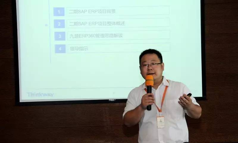 九慧公司副总经理孙汉东,代表九慧做了 ERP 360 管理思路解读,孙总结合九慧案例和从业经验,鲜明指出国内企业导入 SAP 的通病:系统数据和业务运作两张皮,大量手工作不可持续,也浪费系统价值,并引出九慧 ERP 360 如何数字化展现系统业务现状、问题以及优化改进,推动 SAP 上线后,如何更多从业务管理角度去优化系统,让 SAP 系统数据成为业务改善的指挥棒,真正切切通过改善获取 SAP 系统的价值,并结合实际成功案例进行分享。SAP 信息化支撑管理落地四步法:第一步、使用 SAP 系统,业务围绕系统转。 第二步、ERP 360 指标及监控。第三步、体系和制度。第四步、运营考核。