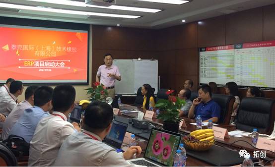 2017年7月26日下午,泰克国际新ERP/BPM项目启动会在泰克中国上海总部二楼会议室如期召开.泰克国际中国总经理王芳斌、财务总监Megan以及项目组全体成员与拓创管理层及顾问团队参加启动仪式。