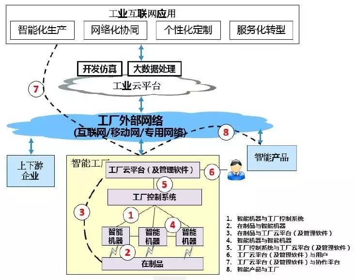 工厂内部网络用于连接在制品、智能机器、工业控制系统、人等主体,包含工厂IT(Information Technology,以下简称IT)网络和工厂OT(OperationalTechnology,工业生产与控制网络,以下简称OT)网络。工厂外部网络用于连接企业上下游、企业与智能产品、企业与用户等主体,有多种工业应用运行在工业云平台上。
